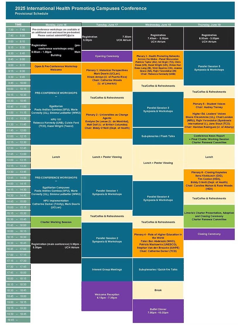 The International Health Promoting Campuses (IHPC) Conference 2025 was held 16-19th June 2025 at that the University of Limerick. The four-day conference gathered students, researchers, policymakers, and higher education institution (HEI) leaders from across six continents to share knowledge and collaborate on strategies for healthier and more sustainable campuses.